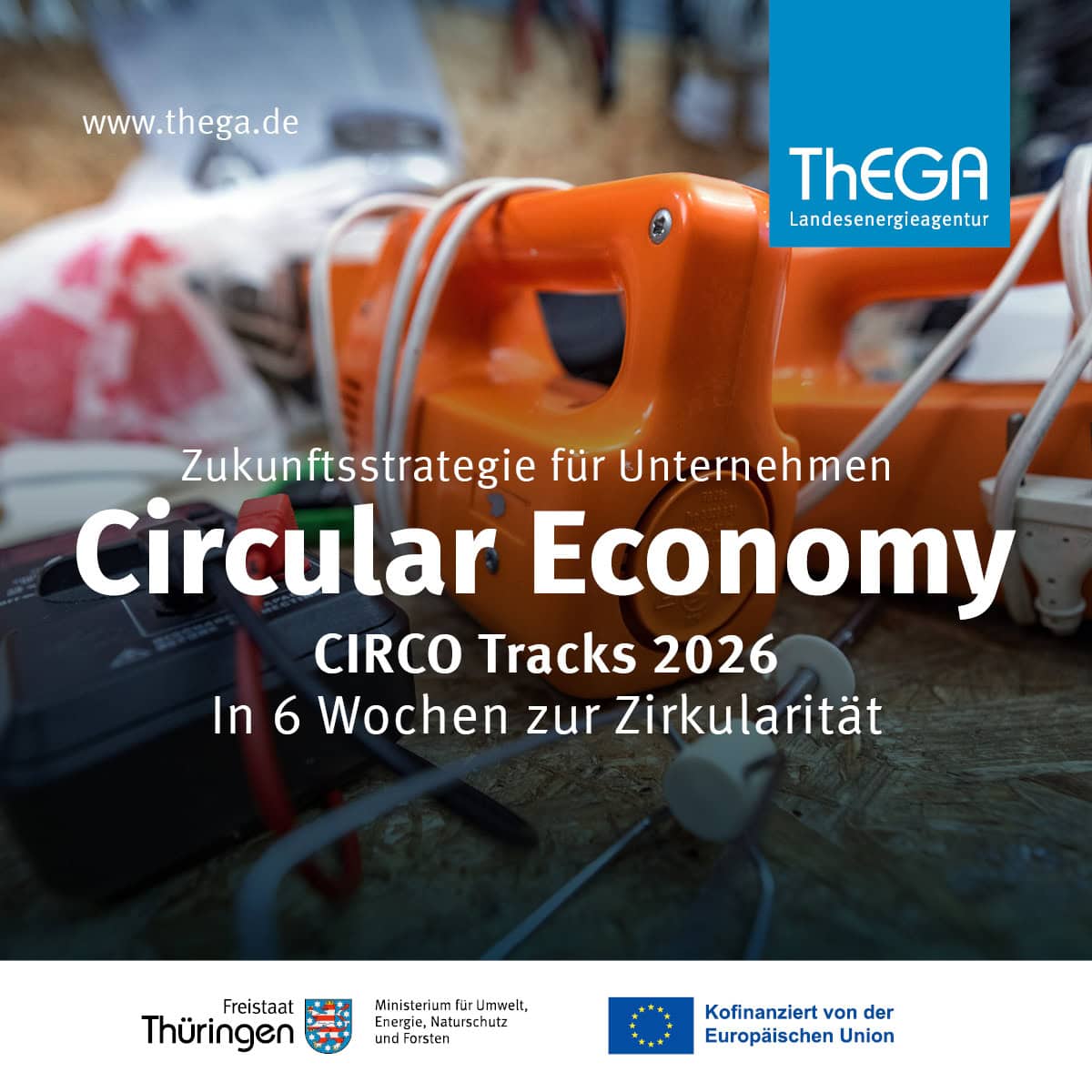 Für einen ersten Einblick in den Ablauf und die CIRCO-Methode bietet die ThEGA auch Infoveranstaltungen an. Die nächsten Termine dafür sind der 20.01.26 um 11 Uhr und der 12.02.26 um 12.30 Uhr, jeweils eine Stunde online. Weitere Informationen, die aktuellen Termine und Ansprechpartner finden Sie auf der Website: www.thega.de/circular-economy