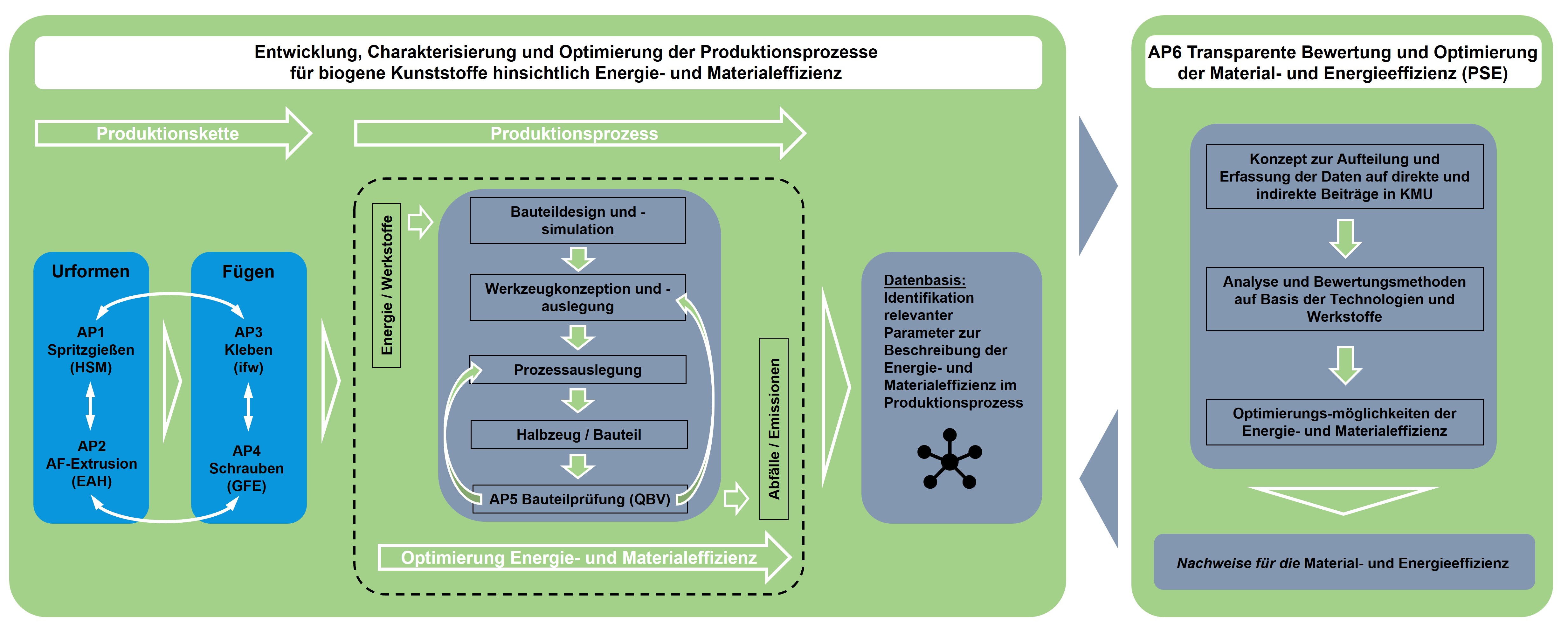 • Entwicklung einer Systematik zur transparenten Bewertung und Optimierung der Material- und Energieeffizienz von biogenen Kunststoffen in Produktionsprozessen